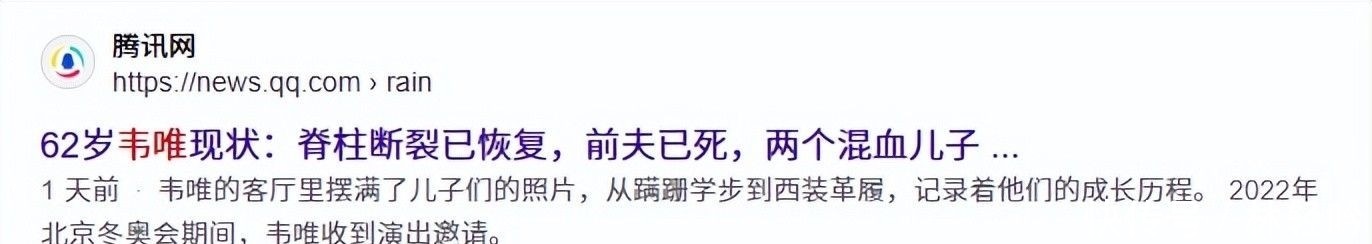1.腾讯新闻:62岁韦唯现状:脊柱断裂已恢复,前夫已死,两个混血儿子回国相伴