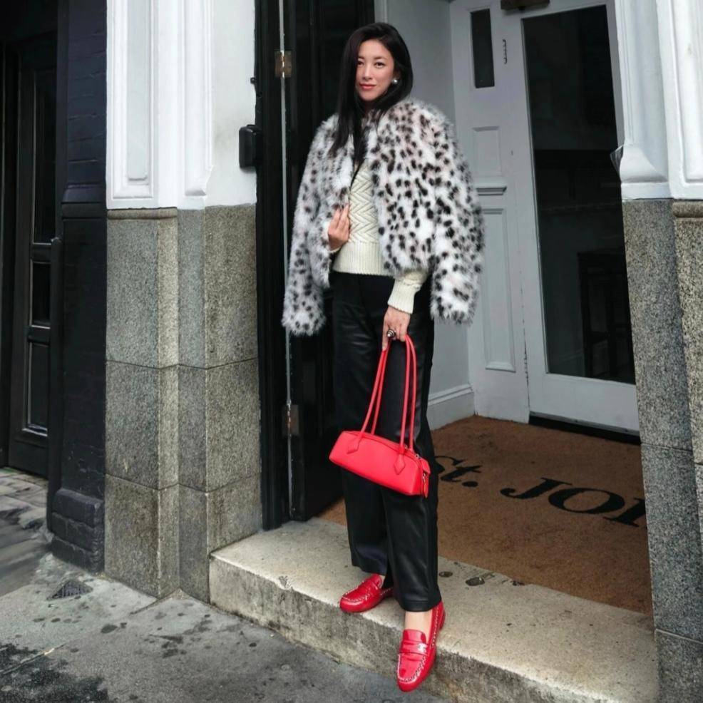 好在她选择的是廓形豹纹毛毛外套,显瘦效果出色,能有效修饰肩宽等问题。高腰款式则可进一步拉高比例,小个子搭配得当,便能营造出腰以下全是腿的视觉效果。