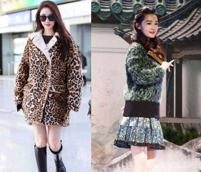 相较于长款,朱珠穿着短款豹纹服饰稍显逊色。短款更适合小个子人群,能够展现出绝佳的比例感。
