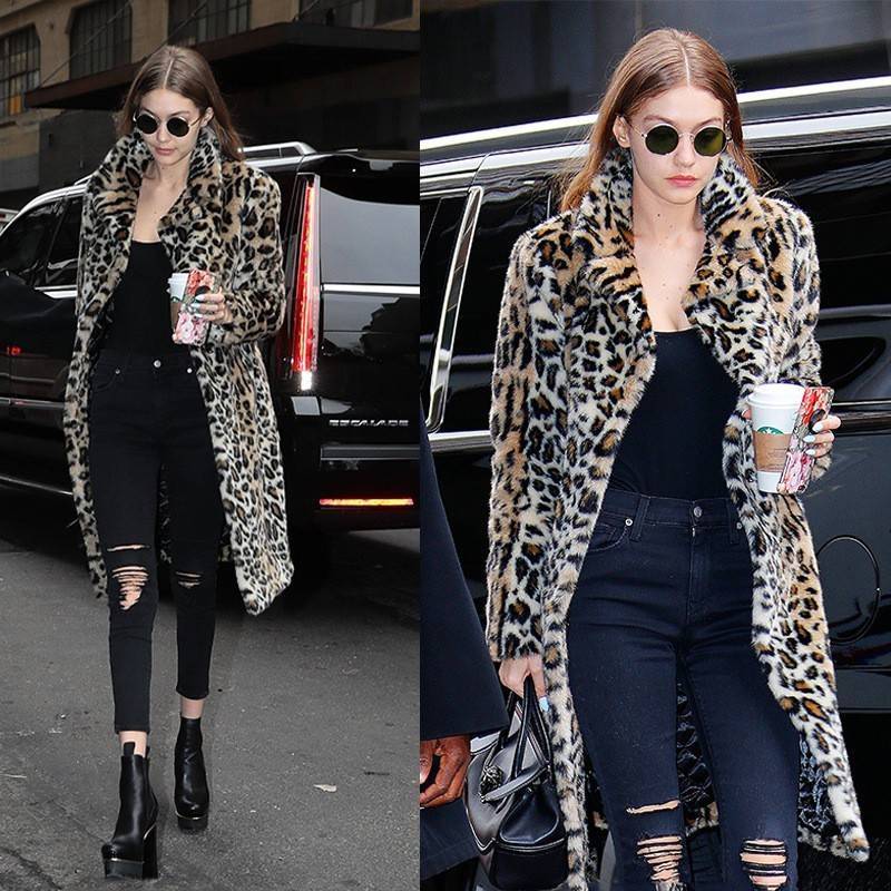 选择如大衣版型的豹纹大衣,走起路来自带气场,尤其适合骨架大的人穿着,优势更为显著。即使身上有肉,穿上后也能呈现出纸片人的效果。